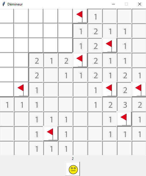 Remarque: Si un drapeau est placé sur une case, on ne peut pas découvrir la case.