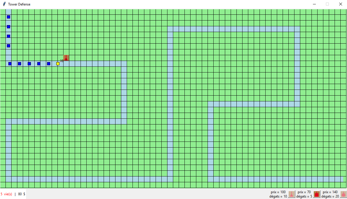 Pour cela, on peut acheter des tours, et les placer au bord du chemin, pour éliminer les ennemis pendant les différents vagues.